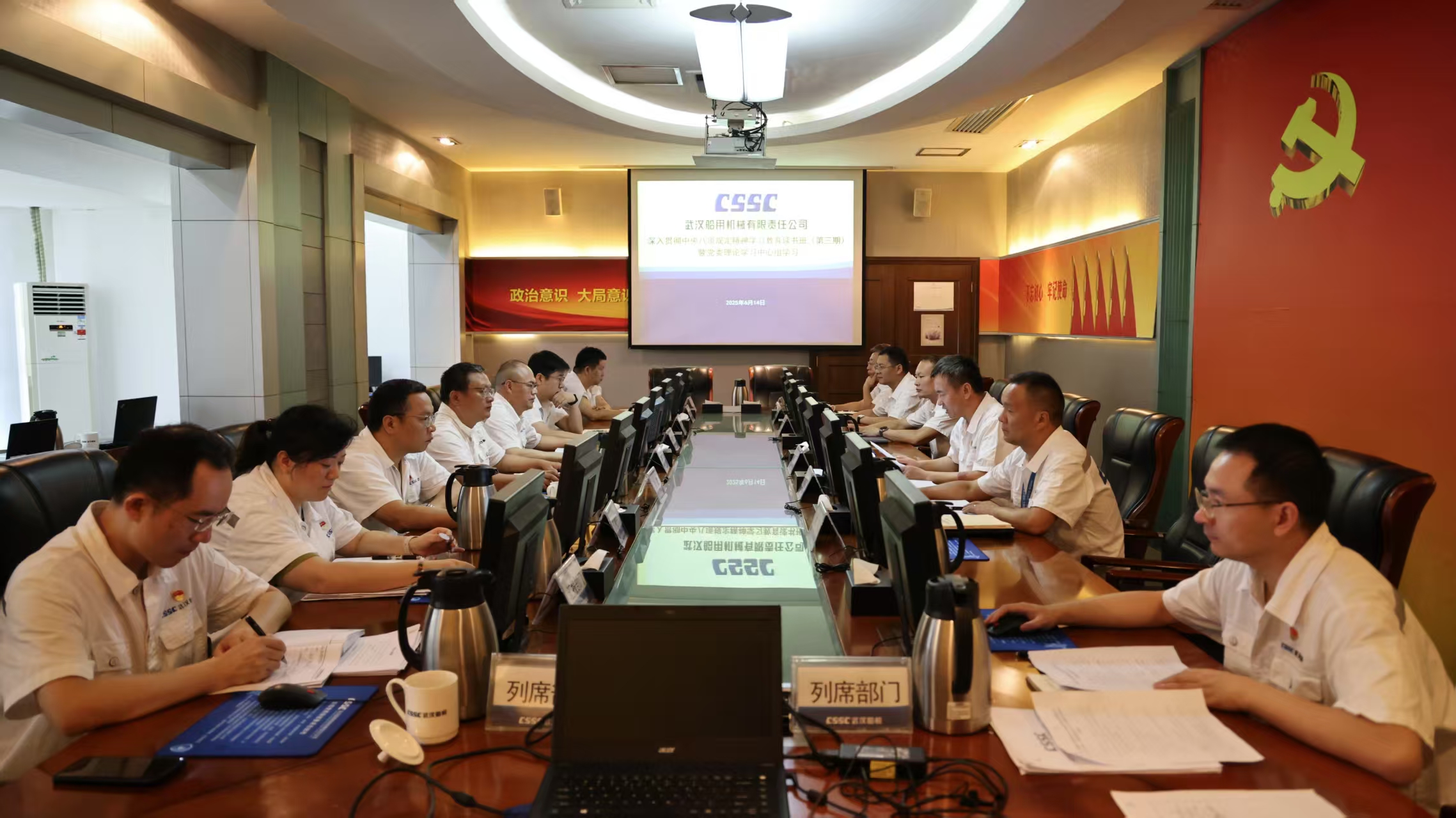 6月14日,中船集團武漢船機黨委召開深入貫徹中央八項規(guī)定精神學(xué)習教育讀書班(第三期)暨黨委理論學(xué)習中心組學(xué)習會議。公司黨委副書記、總經(jīng)理程立兵主持會議并領(lǐng)學(xué)。公司黨委理論學(xué)習中心組成員參加學(xué)習研討,總經(jīng)理助理、學(xué)習教育工作專班成員列席會議。
